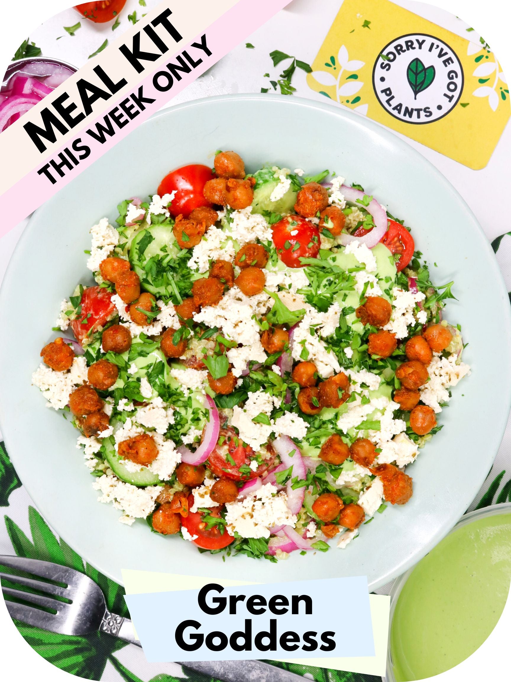 green goddess sauce: tofu, lime juice, maple syrup, cilantro, parsley, green onion, dill, garlic, canola oil, salt & pepper