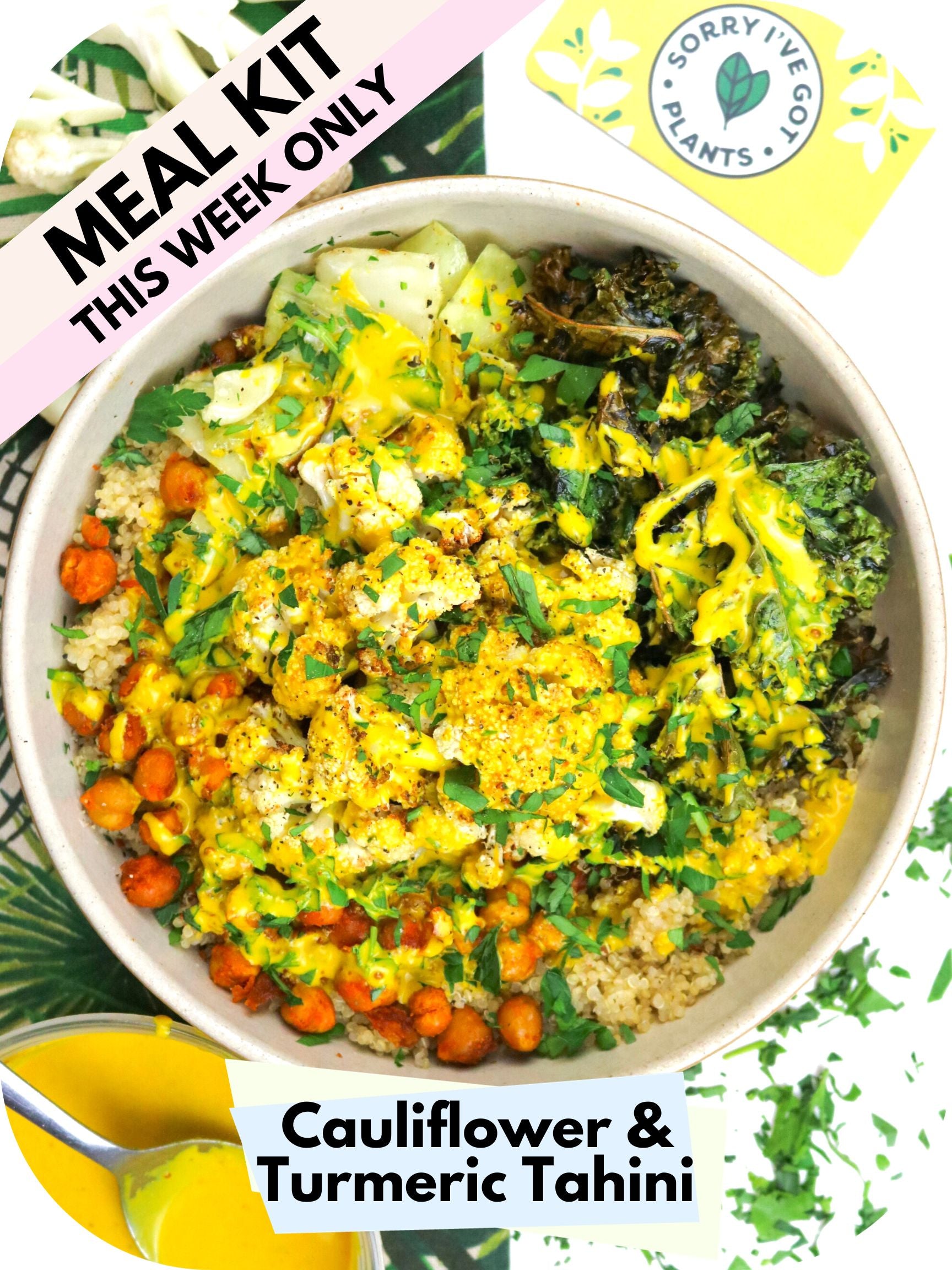 turmeric tahini drizzle: tahini, apple cider vinegar, lemon, oil, tamari, maple syrup, mustard, nutritional yeast, water, turmeric